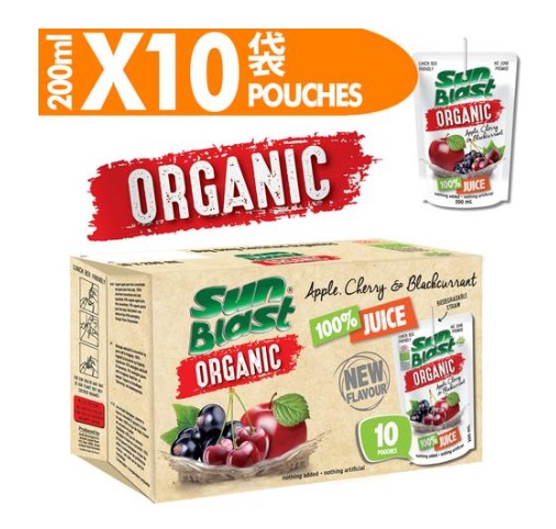 没有添加,没有人为的 浓缩有机苹果、樱桃和黑加仑汁。100%果汁 94%的浓缩有机苹果汁,3%的浓缩有机樱桃汁,3%的浓缩有机黑加仑汁 室温保存,开封前摇匀